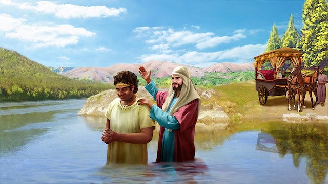 圣经中记载着一个故事:“有主的一个使者对腓利说:起来!向南走,往那从耶路撒冷下迦萨的路上去。那路是旷野。腓利就起身去了,不料,有一个埃提阿伯人,是个有大权的太监,在埃提阿伯女王干大基的手下总管银库,他上耶路撒冷礼拜去了。现在回来,在车上坐着,念先知以赛亚的书。圣灵对腓利说:你去!贴近那车走。腓利就跑到太监那里,听见他念先知以赛亚的书,便问他说:你所念的,你明白吗?他说:没有人指教我,怎能明白呢?于是请腓利上车,与他同坐。他所念的那段经,说:他像羊被牵到宰杀之地,又像羊羔在剪毛的人手下无声;他也是这样不开口。他卑微的时候,人不按公义审判他(原文是他的审判被夺去);谁能述说他的世代,因为他的生命从地上夺去。太监对腓利说:请问,先知说这话是指着谁?是指着自己呢?是指着别人呢?腓利就开口从这经上起,对他传讲耶稣。二人正往前走,到了有水的地方,太监说:看哪,这里有水,我受洗有什么妨碍呢?(有古卷在此有:腓利说:你若是一心相信,就可以。他回答说:我信耶稣基督是神的儿子。)于是吩咐车站住,腓利和太监二人同下水里去,腓利就给他施洗。”(徒8:26-38)